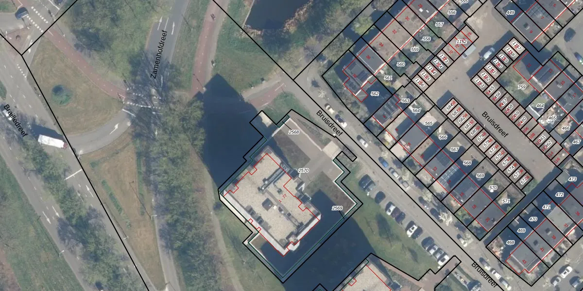 Bruisdreef 15 is gelegen op kadastraal perceel UTT00H2570. Deze kadastrale aanduiding is uniek en wordt gebruikt door het Kadaster om eigendomsrechten en andere zakelijke rechten vast te leggen. Het perceel maakt onderdeel uit van de kadastrale gemeente Utrecht.