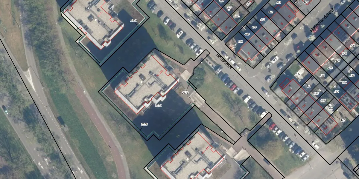 Bruisdreef 153 is gelegen op kadastraal perceel UTT00H2571. Deze kadastrale aanduiding is uniek en wordt gebruikt door het Kadaster om eigendomsrechten en andere zakelijke rechten vast te leggen. Het perceel maakt onderdeel uit van de kadastrale gemeente Utrecht.