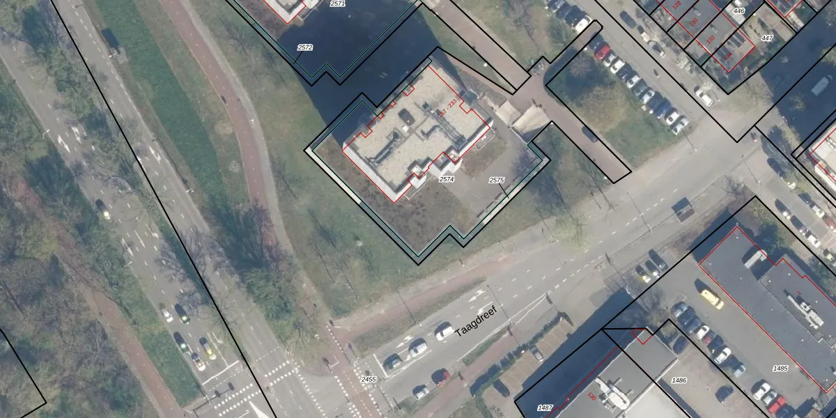 Het perceel waarop Bruisdreef 177 staat heeft een oppervlakte van 1766 m². Dit is een zeer groot perceel. De perceeloppervlakte wordt geregistreerd door het Kadaster. Gedetailleerde informatie over de maten van dit perceel kunt u vinden in het rapport Kadastrale kaart met maatvoering van Bruisdreef 177.