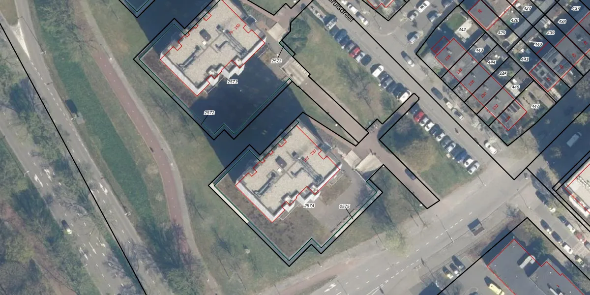 Het perceel waarop Bruisdreef 233 staat heeft een oppervlakte van 1766 m². Dit is een zeer groot perceel. De perceeloppervlakte wordt geregistreerd door het Kadaster. Gedetailleerde informatie over de maten van dit perceel kunt u vinden in het rapport Kadastrale kaart met maatvoering van Bruisdreef 233.