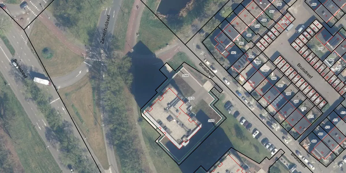 Bruisdreef 45 is gelegen op kadastraal perceel UTT00H2570. Deze kadastrale aanduiding is uniek en wordt gebruikt door het Kadaster om eigendomsrechten en andere zakelijke rechten vast te leggen. Het perceel maakt onderdeel uit van de kadastrale gemeente Utrecht.