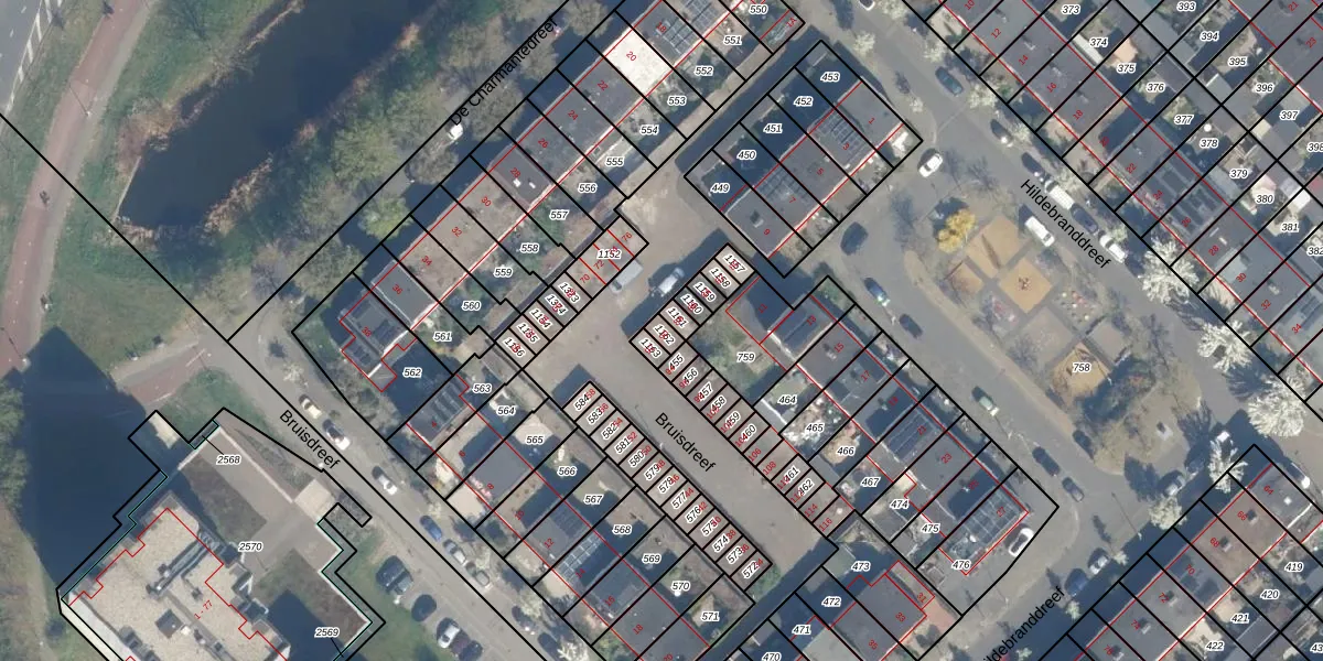 Gebruik de zoekbalk of klik op een perceel voor informatie over de adressen binnen dit perceel.