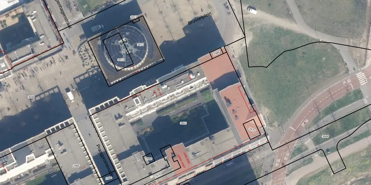 Het perceel waarop Brusselplein 123 staat heeft een oppervlakte van 4155 m². Dit is een zeer groot perceel. De perceeloppervlakte wordt geregistreerd door het Kadaster. Gedetailleerde informatie over de maten van dit perceel kunt u vinden in het rapport Kadastrale kaart met maatvoering van Brusselplein 123.