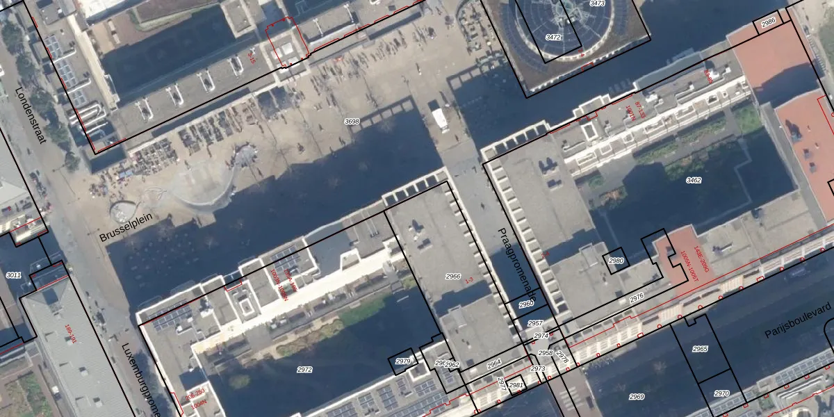 Het perceel waarop Brusselplein 145 staat heeft een oppervlakte van 717 m². Dit is een groot perceel. De perceeloppervlakte wordt geregistreerd door het Kadaster. Gedetailleerde informatie over de maten van dit perceel kunt u vinden in het rapport Kadastrale kaart met maatvoering van Brusselplein 145.