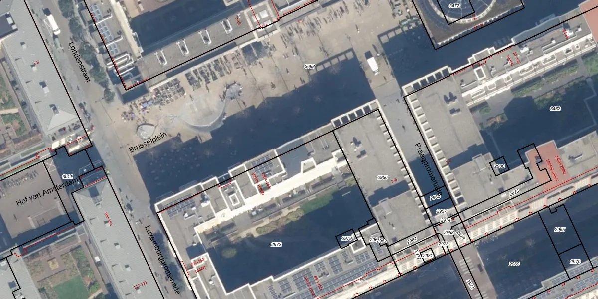 Het perceel waarop Brusselplein 153 staat heeft een oppervlakte van 3386 m². Dit is een zeer groot perceel. De perceeloppervlakte wordt geregistreerd door het Kadaster. Gedetailleerde informatie over de maten van dit perceel kunt u vinden in het rapport Kadastrale kaart met maatvoering van Brusselplein 153.