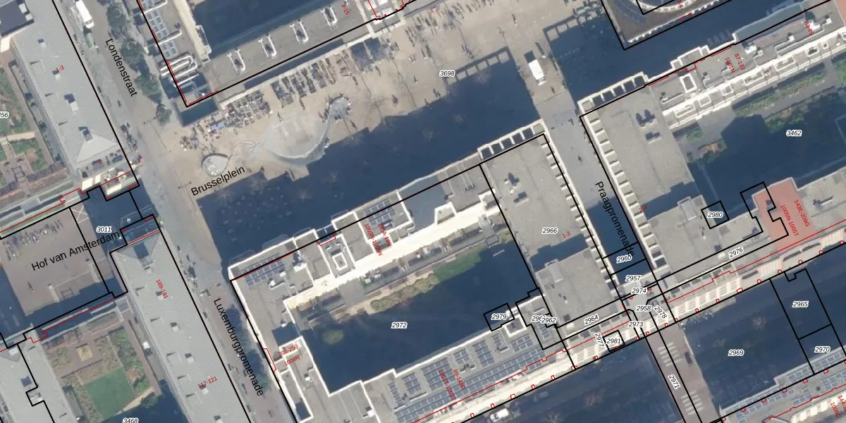 Het perceel waarop Brusselplein 171 staat heeft een oppervlakte van 3386 m². Dit is een zeer groot perceel. De perceeloppervlakte wordt geregistreerd door het Kadaster. Gedetailleerde informatie over de maten van dit perceel kunt u vinden in het rapport Kadastrale kaart met maatvoering van Brusselplein 171.
