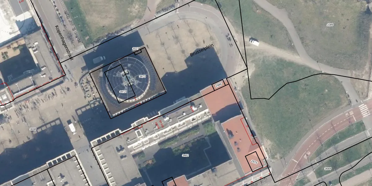 Het perceel waarop Brusselplein 91 staat heeft een oppervlakte van 9395 m². Dit is een zeer groot perceel. De perceeloppervlakte wordt geregistreerd door het Kadaster. Gedetailleerde informatie over de maten van dit perceel kunt u vinden in het rapport Kadastrale kaart met maatvoering van Brusselplein 91.