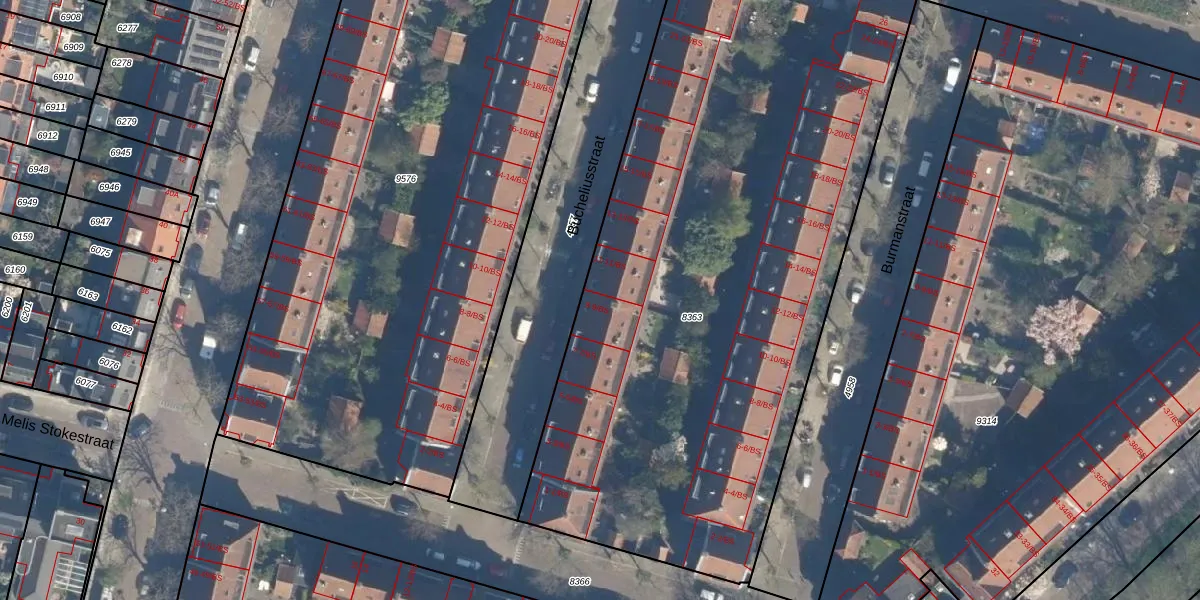 Het perceel waarop Bucheliusstraat 9 staat heeft een oppervlakte van 4069 m². Dit is een zeer groot perceel. De perceeloppervlakte wordt geregistreerd door het Kadaster. Gedetailleerde informatie over de maten van dit perceel kunt u vinden in het rapport Kadastrale kaart met maatvoering van Bucheliusstraat 9.