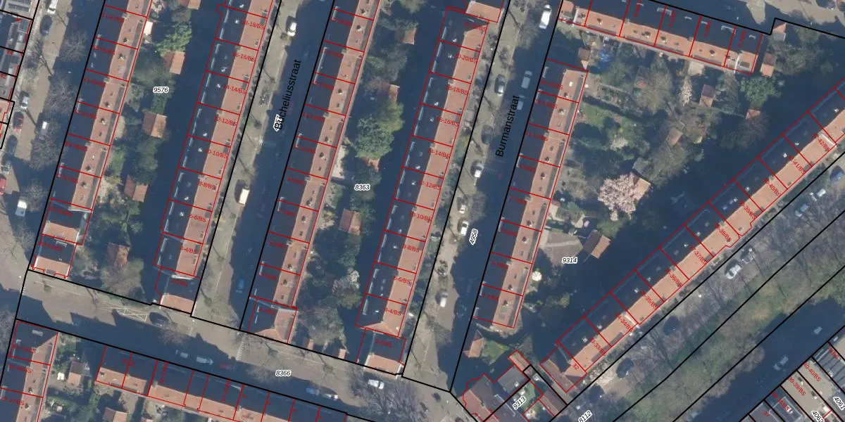 Het perceel waarop Burmanstraat 10 staat heeft een oppervlakte van 4069 m². Dit is een zeer groot perceel. De perceeloppervlakte wordt geregistreerd door het Kadaster. Gedetailleerde informatie over de maten van dit perceel kunt u vinden in het rapport Kadastrale kaart met maatvoering van Burmanstraat 10.