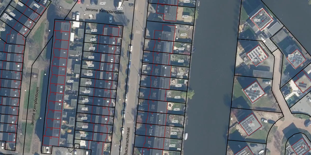 Gebruik de zoekbalk of klik op een perceel voor informatie over de adressen binnen dit perceel.