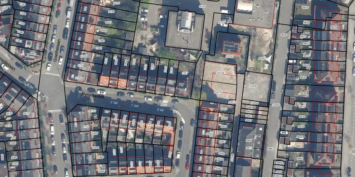 Het perceel waarop Byronstraat 18 staat heeft een oppervlakte van 187 m². Dit is een middelgroot perceel. De perceeloppervlakte wordt geregistreerd door het Kadaster. Gedetailleerde informatie over de maten van dit perceel kunt u vinden in het rapport Kadastrale kaart met maatvoering van Byronstraat 18.
