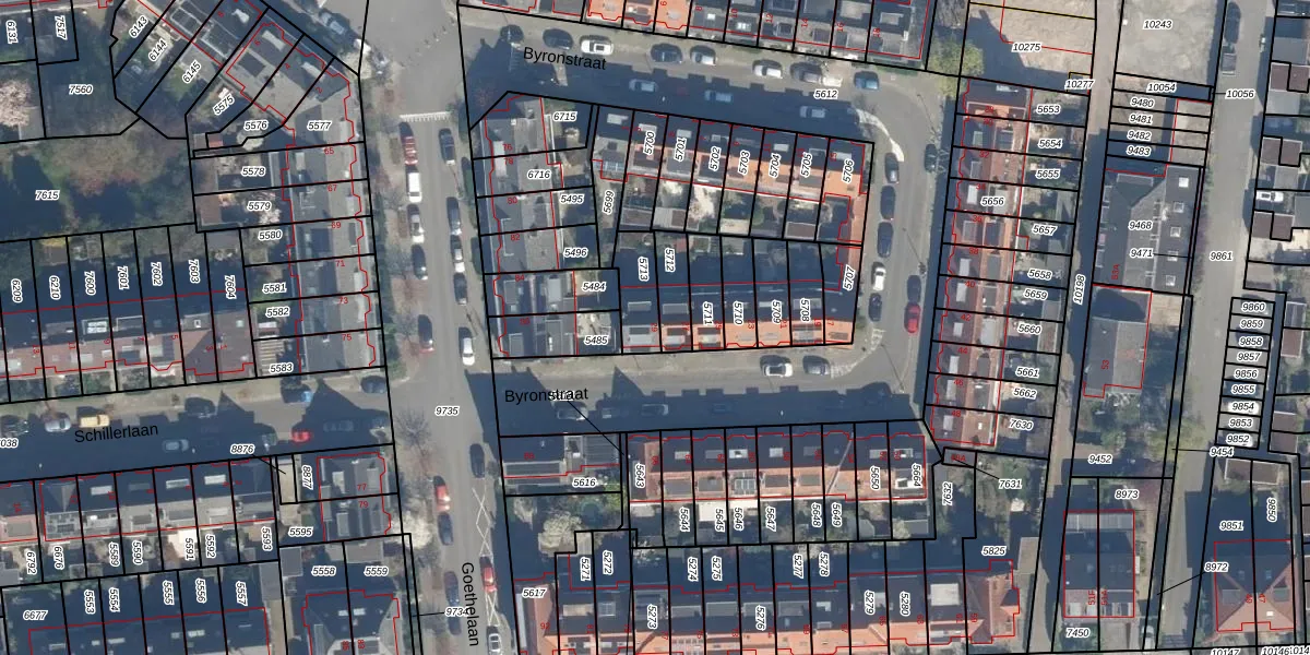 Het perceel waarop Byronstraat 29 staat heeft een oppervlakte van 111 m². Dit is een middelgroot perceel. De perceeloppervlakte wordt geregistreerd door het Kadaster. Gedetailleerde informatie over de maten van dit perceel kunt u vinden in het rapport Kadastrale kaart met maatvoering van Byronstraat 29.