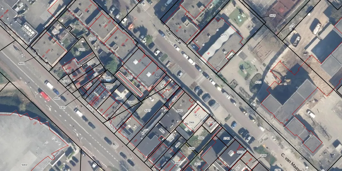 C. van Maasdijkstraat 96-B is gelegen op kadastraal perceel ZLN02C5327. Deze kadastrale aanduiding is uniek en wordt gebruikt door het Kadaster om eigendomsrechten en andere zakelijke rechten vast te leggen. Het perceel maakt onderdeel uit van de kadastrale gemeente Zuilen.