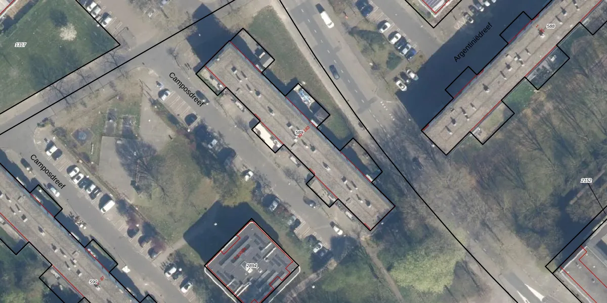 Het perceel waarop Camposdreef 131 staat heeft een oppervlakte van 1288 m². Dit is een zeer groot perceel. De perceeloppervlakte wordt geregistreerd door het Kadaster. Gedetailleerde informatie over de maten van dit perceel kunt u vinden in het rapport Kadastrale kaart met maatvoering van Camposdreef 131.