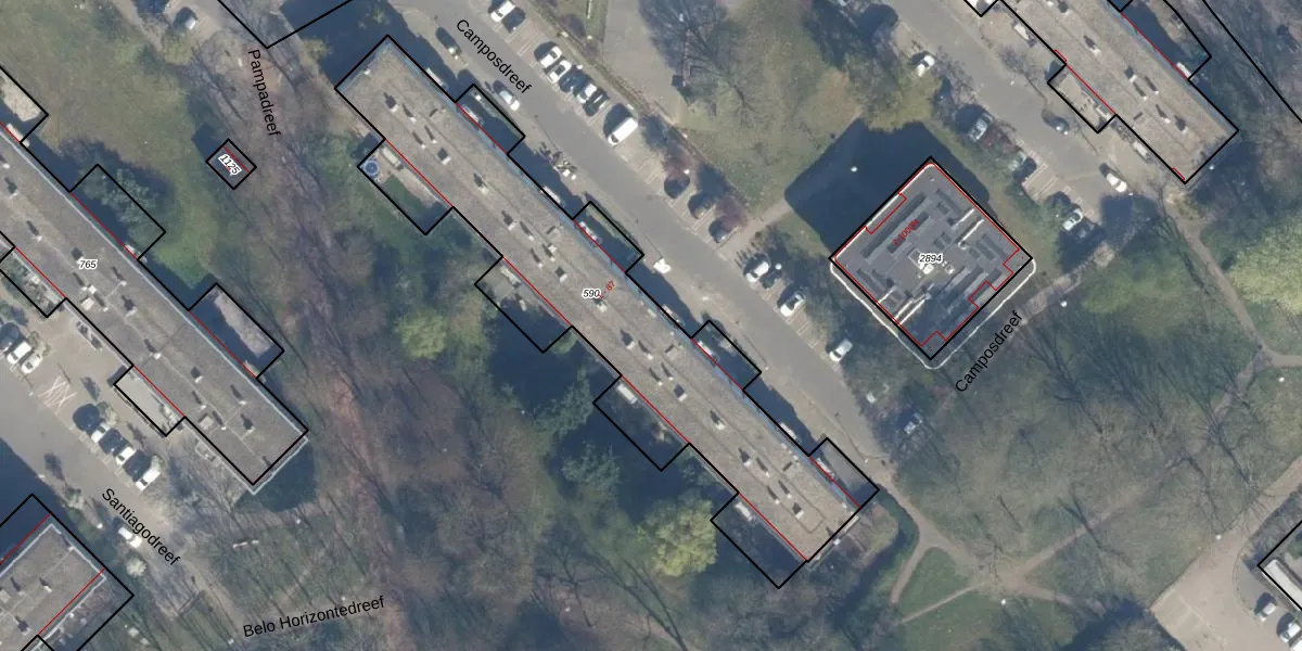 Het perceel waarop Camposdreef 59 staat heeft een oppervlakte van 1719 m². Dit is een zeer groot perceel. De perceeloppervlakte wordt geregistreerd door het Kadaster. Gedetailleerde informatie over de maten van dit perceel kunt u vinden in het rapport Kadastrale kaart met maatvoering van Camposdreef 59.