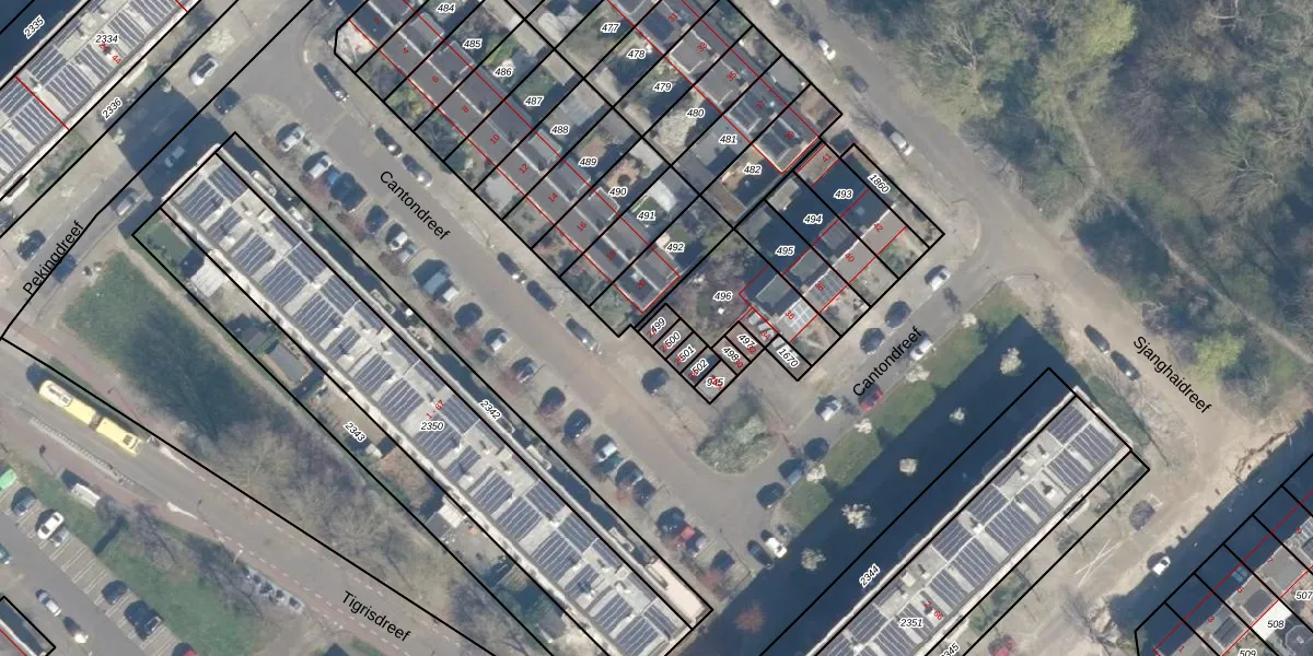 Gebruik de zoekbalk of klik op een perceel voor informatie over de adressen binnen dit perceel.
