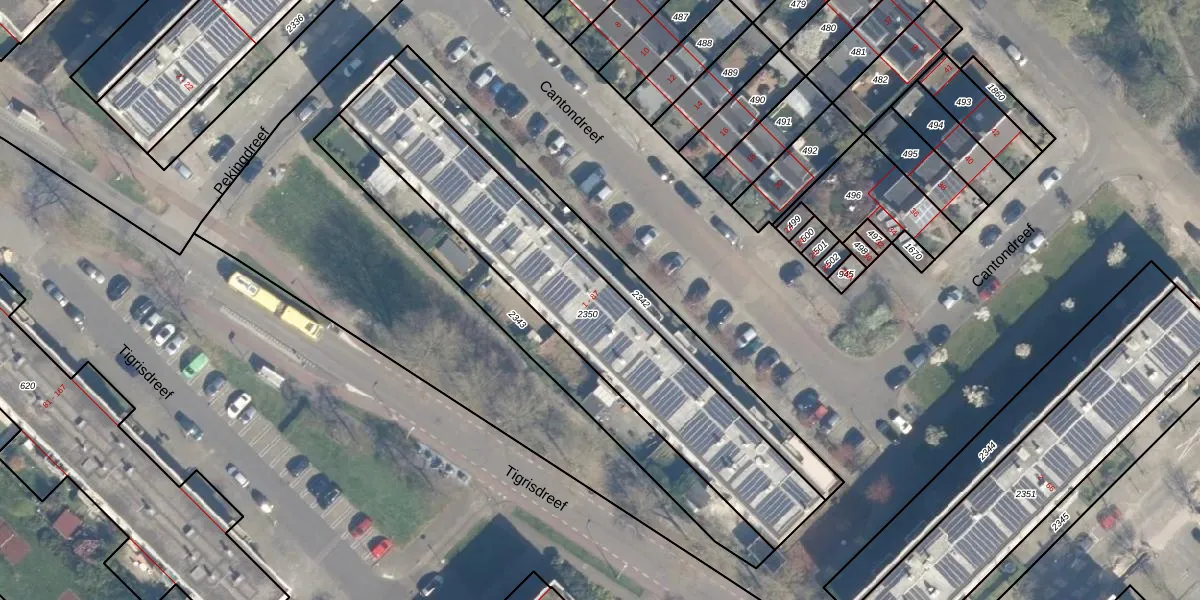 Cantondreef 45 is gelegen op kadastraal perceel UTT00F2350. Deze kadastrale aanduiding is uniek en wordt gebruikt door het Kadaster om eigendomsrechten en andere zakelijke rechten vast te leggen. Het perceel maakt onderdeel uit van de kadastrale gemeente Utrecht.
