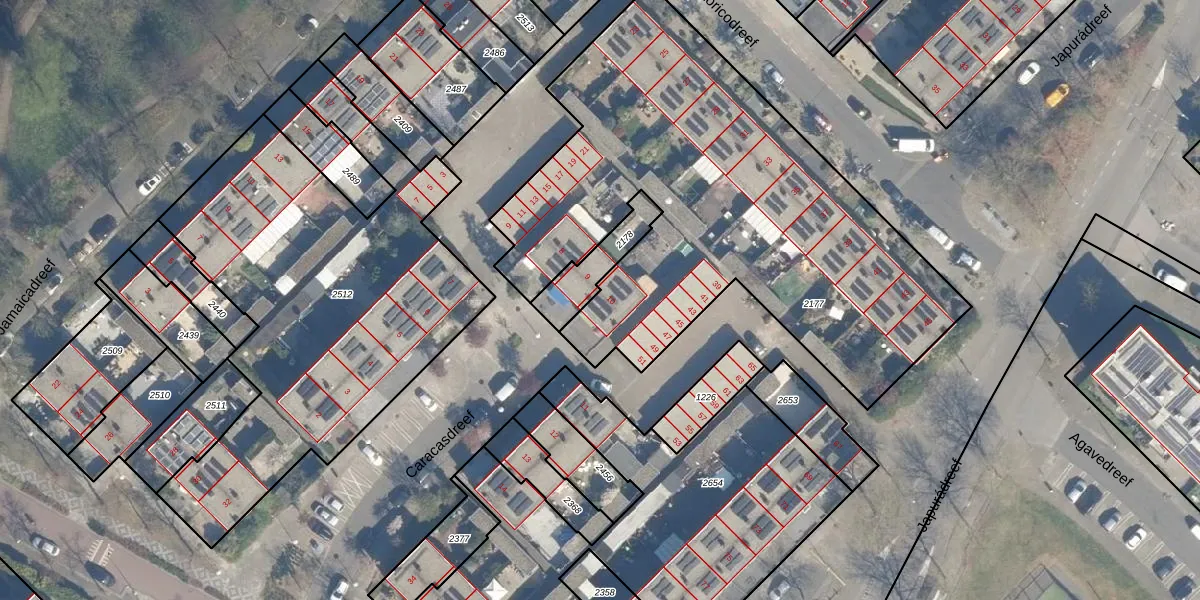Het perceel waarop Caracasdreef 10 staat heeft een oppervlakte van 2640 m². Dit is een zeer groot perceel. De perceeloppervlakte wordt geregistreerd door het Kadaster. Gedetailleerde informatie over de maten van dit perceel kunt u vinden in het rapport Kadastrale kaart met maatvoering van Caracasdreef 10.
