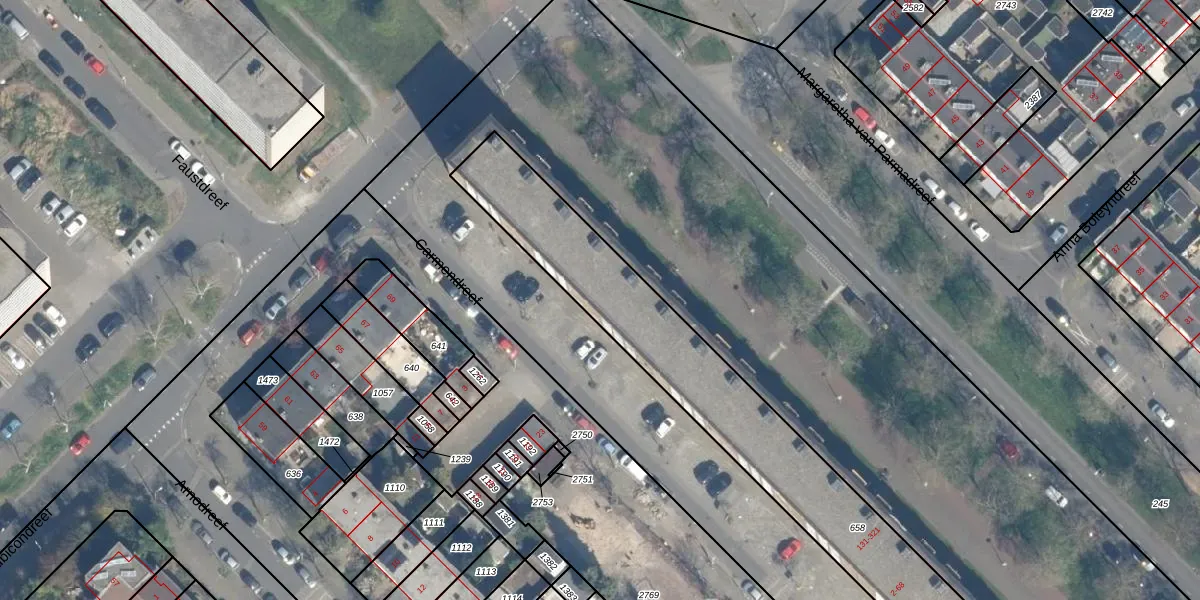 Het perceel waarop Carmendreef 12 staat heeft een oppervlakte van 1690 m². Dit is een zeer groot perceel. De perceeloppervlakte wordt geregistreerd door het Kadaster. Gedetailleerde informatie over de maten van dit perceel kunt u vinden in het rapport Kadastrale kaart met maatvoering van Carmendreef 12.