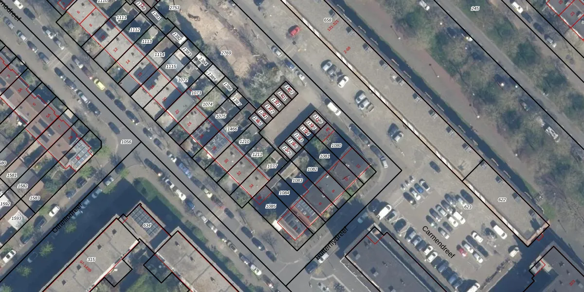 Het perceel waarop Carmendreef 39 staat heeft een oppervlakte van 18 m². Dit is een klein perceel. De perceeloppervlakte wordt geregistreerd door het Kadaster. Gedetailleerde informatie over de maten van dit perceel kunt u vinden in het rapport Kadastrale kaart met maatvoering van Carmendreef 39.