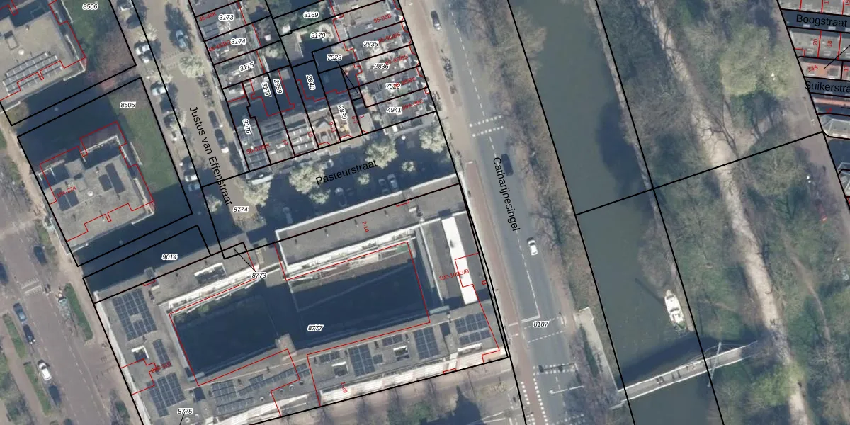 Het adres is gelegen op perceel 8777 in de sectie D en de kadastrale gemeente Catharijne. De kadastrale aanduiding is aldus CTR00-D-8777. De oppervlakte van het perceel is 3570 m². Dat is groter dan gemiddeld in Catharijne, waar de gemiddelde perceeloppervlakte op 828,82 m² ligt. Het kleinste perceel in de kadastrale gemeente is 0 m² groot. De grootste perceeloppervlakte is 35,6 ha. Op het perceel liggen in totaal 105 adressen. De huidige grenzen van het perceel zijn digitaal in de Basisregistratie Kadaster (BRK) geregistreerd op 10-05-1999.