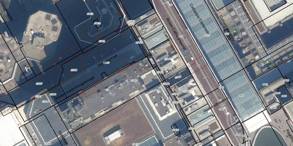 Het perceel waarop het adres ligt is CTR00-D-10262. De afkorting 'CTR00' staat voor kadastrale gemeente Catharijne. Het perceel is met 1482 m² relatief groot. Het gemiddelde ligt in de kadastrale gemeente Catharijne op 828,82 m². Het kleinste perceel in de kadastrale gemeente is 0 m² groot. De grootste perceeloppervlakte is 35,6 ha. Op het perceel zijn 94 adressen aanwezig. De huidige grenzen van het perceel zijn digitaal in de Basisregistratie Kadaster (BRK) geregistreerd op 08-04-2024.