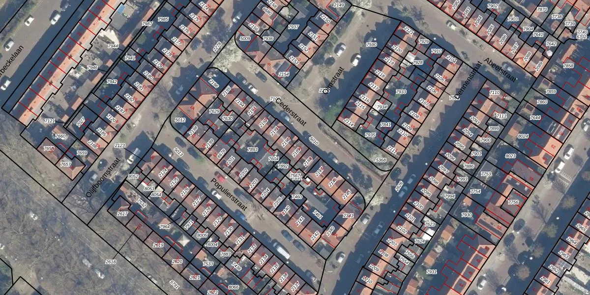 Gebruik de zoekbalk of klik op een perceel voor informatie over de adressen binnen dit perceel.