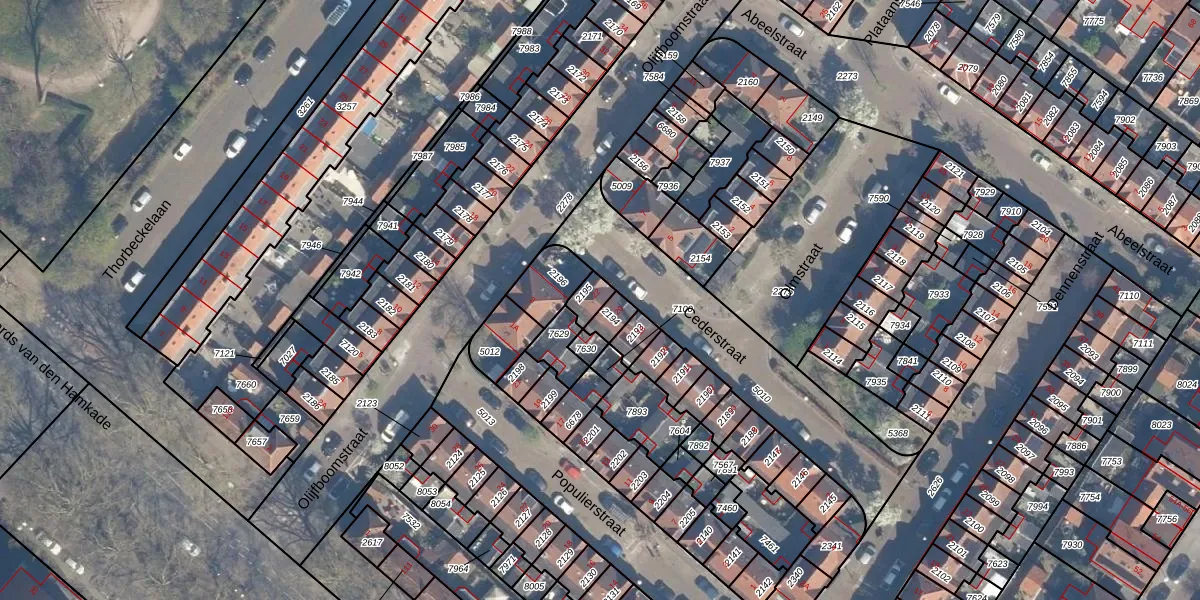 Gebruik de zoekbalk of klik op een perceel voor informatie over de adressen binnen dit perceel.