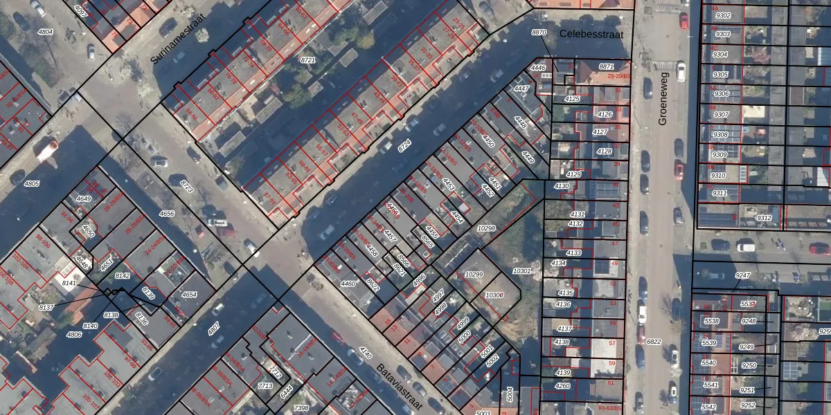 Het perceel waarop Celebesstraat 20-B staat heeft een oppervlakte van 92 m². Dit is een klein perceel. De perceeloppervlakte wordt geregistreerd door het Kadaster. Gedetailleerde informatie over de maten van dit perceel kunt u vinden in het rapport Kadastrale kaart met maatvoering van Celebesstraat 20-B.