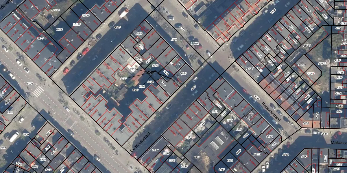 Het perceel waarop Celebesstraat 91 staat heeft een oppervlakte van 95 m². Dit is een klein perceel. De perceeloppervlakte wordt geregistreerd door het Kadaster. Gedetailleerde informatie over de maten van dit perceel kunt u vinden in het rapport Kadastrale kaart met maatvoering van Celebesstraat 91.