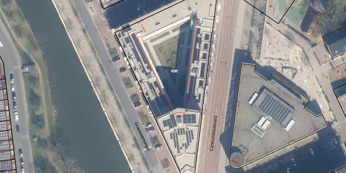 Het perceel waarop Centrumboulevard 15-D staat heeft een oppervlakte van 3400 m². Dit is een zeer groot perceel. De perceeloppervlakte wordt geregistreerd door het Kadaster. Gedetailleerde informatie over de maten van dit perceel kunt u vinden in het rapport Kadastrale kaart met maatvoering van Centrumboulevard 15-D.