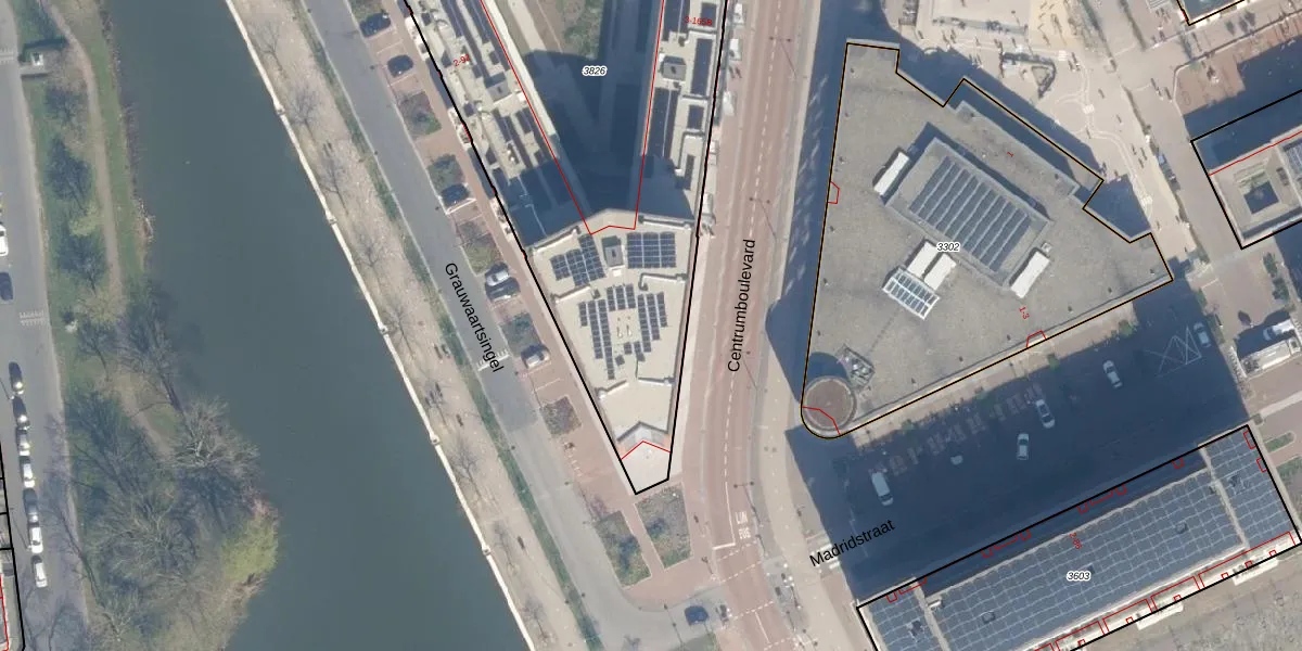 Het perceel waarop Centrumboulevard 3-C staat heeft een oppervlakte van 3400 m². Dit is een zeer groot perceel. De perceeloppervlakte wordt geregistreerd door het Kadaster. Gedetailleerde informatie over de maten van dit perceel kunt u vinden in het rapport Kadastrale kaart met maatvoering van Centrumboulevard 3-C.