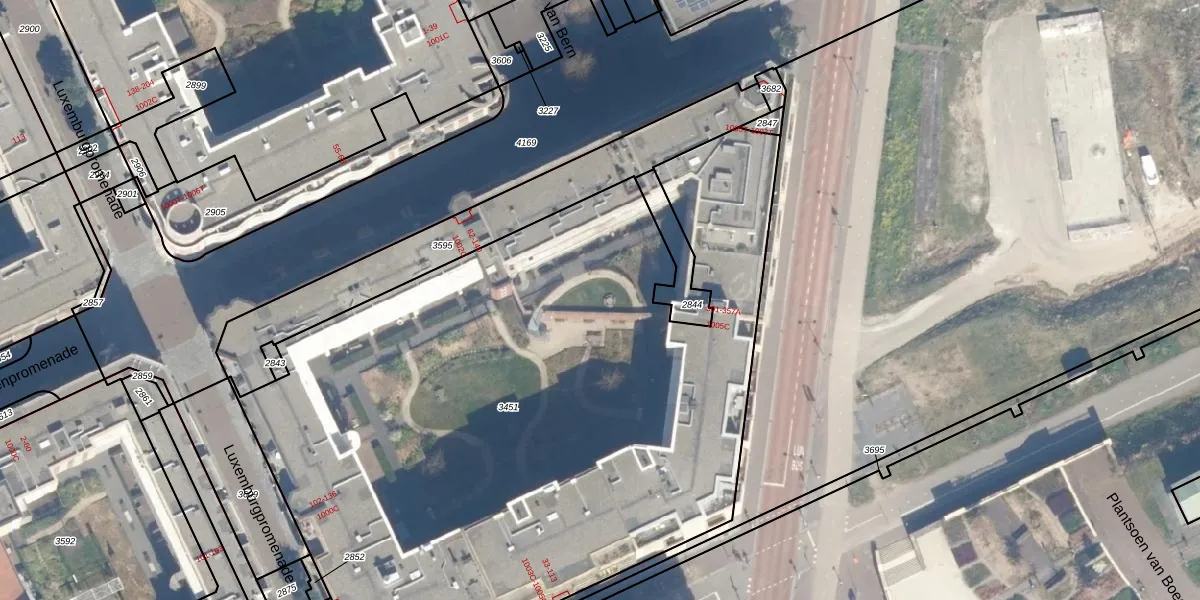 Het perceel waarop Centrumboulevard 381 staat heeft een oppervlakte van 4793 m². Dit is een zeer groot perceel. De perceeloppervlakte wordt geregistreerd door het Kadaster. Gedetailleerde informatie over de maten van dit perceel kunt u vinden in het rapport Kadastrale kaart met maatvoering van Centrumboulevard 381.