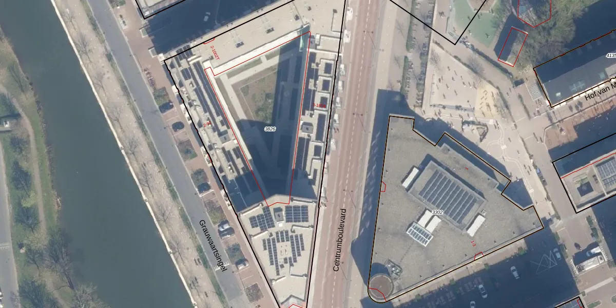 Het perceel waarop Centrumboulevard 49 staat heeft een oppervlakte van 3400 m². Dit is een zeer groot perceel. De perceeloppervlakte wordt geregistreerd door het Kadaster. Gedetailleerde informatie over de maten van dit perceel kunt u vinden in het rapport Kadastrale kaart met maatvoering van Centrumboulevard 49.