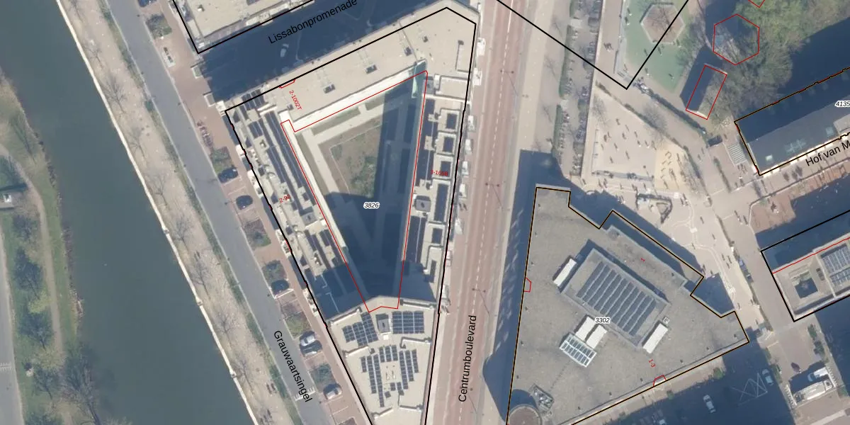 Het perceel waarop Centrumboulevard 59 staat heeft een oppervlakte van 3400 m². Dit is een zeer groot perceel. De perceeloppervlakte wordt geregistreerd door het Kadaster. Gedetailleerde informatie over de maten van dit perceel kunt u vinden in het rapport Kadastrale kaart met maatvoering van Centrumboulevard 59.