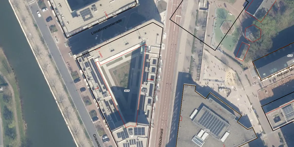 Het perceel waarop Centrumboulevard 87 staat heeft een oppervlakte van 3400 m². Dit is een zeer groot perceel. De perceeloppervlakte wordt geregistreerd door het Kadaster. Gedetailleerde informatie over de maten van dit perceel kunt u vinden in het rapport Kadastrale kaart met maatvoering van Centrumboulevard 87.