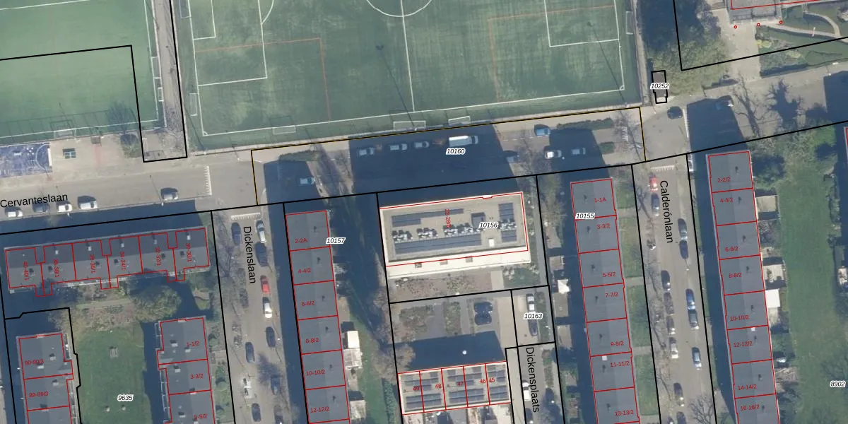 Het perceel waarop Cervanteslaan 28-7 staat heeft een oppervlakte van 996 m². Dit is een groot perceel. De perceeloppervlakte wordt geregistreerd door het Kadaster. Gedetailleerde informatie over de maten van dit perceel kunt u vinden in het rapport Kadastrale kaart met maatvoering van Cervanteslaan 28-7.