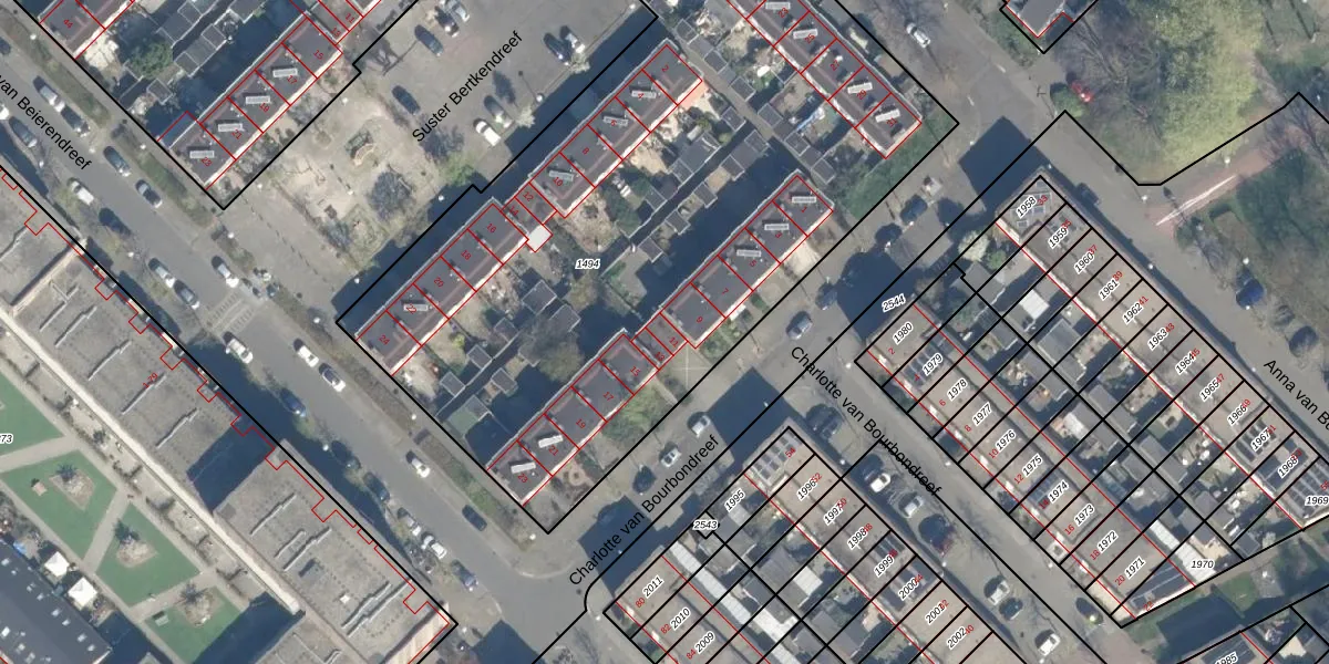 Het perceel waarop Charlotte van Bourbondreef 11 staat heeft een oppervlakte van 3995 m². Dit is een zeer groot perceel. De perceeloppervlakte wordt geregistreerd door het Kadaster. Gedetailleerde informatie over de maten van dit perceel kunt u vinden in het rapport Kadastrale kaart met maatvoering van Charlotte van Bourbondreef 11.
