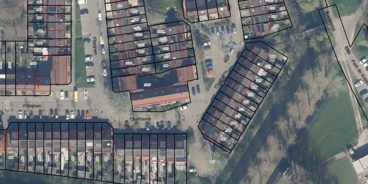 Chathams 16 is gelegen op kadastraal perceel UTT00O1035. Deze kadastrale aanduiding is uniek en wordt gebruikt door het Kadaster om eigendomsrechten en andere zakelijke rechten vast te leggen. Het perceel maakt onderdeel uit van de kadastrale gemeente Utrecht.