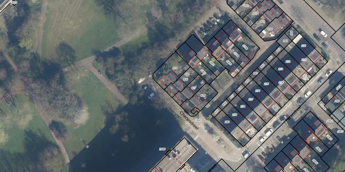 Het perceel waarop Cheopsdreef 7 staat heeft een oppervlakte van 133 m². Dit is een middelgroot perceel. De perceeloppervlakte wordt geregistreerd door het Kadaster. Gedetailleerde informatie over de maten van dit perceel kunt u vinden in het rapport Kadastrale kaart met maatvoering van Cheopsdreef 7.