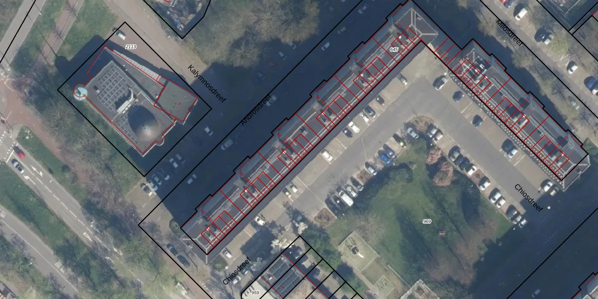 Het perceel waarop Chiosdreef 53 staat heeft een oppervlakte van 2218 m². Dit is een zeer groot perceel. De perceeloppervlakte wordt geregistreerd door het Kadaster. Gedetailleerde informatie over de maten van dit perceel kunt u vinden in het rapport Kadastrale kaart met maatvoering van Chiosdreef 53.