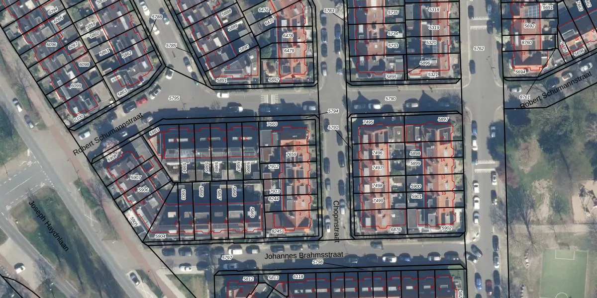 Gebruik de zoekbalk of klik op een perceel voor informatie over de adressen binnen dit perceel.