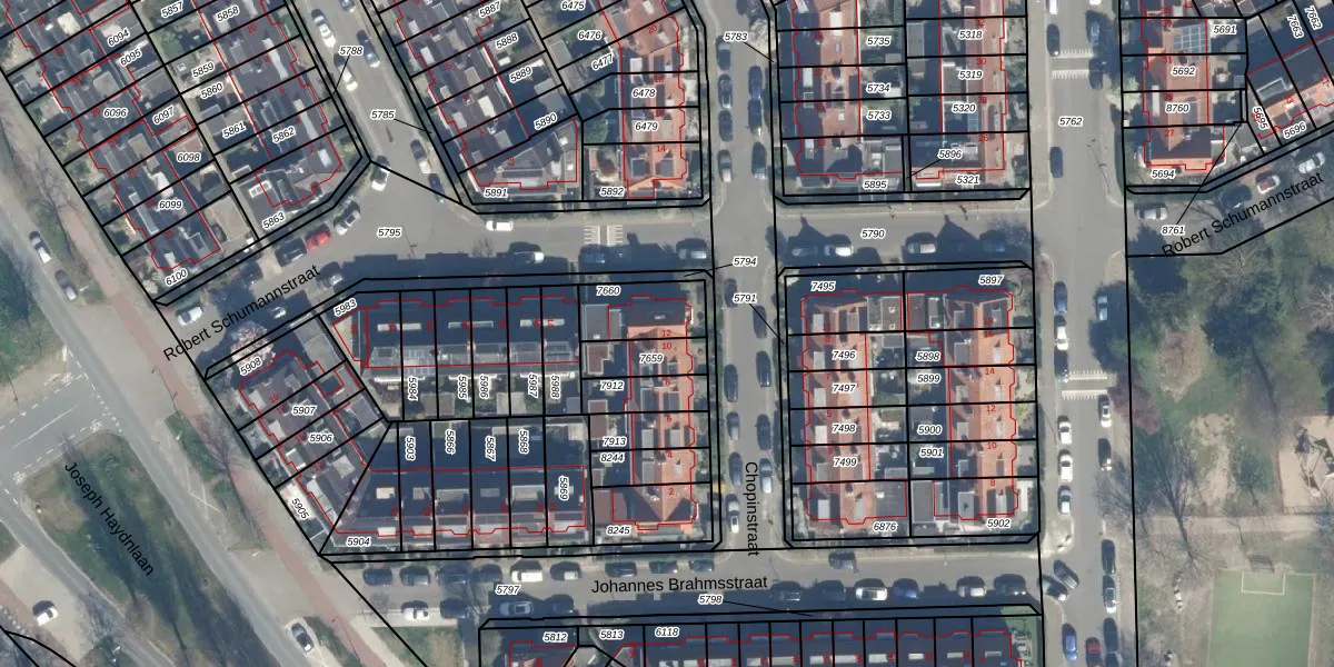 Het perceel waarop Chopinstraat 12 staat heeft een oppervlakte van 169 m². Dit is een middelgroot perceel. De perceeloppervlakte wordt geregistreerd door het Kadaster. Gedetailleerde informatie over de maten van dit perceel kunt u vinden in het rapport Kadastrale kaart met maatvoering van Chopinstraat 12.