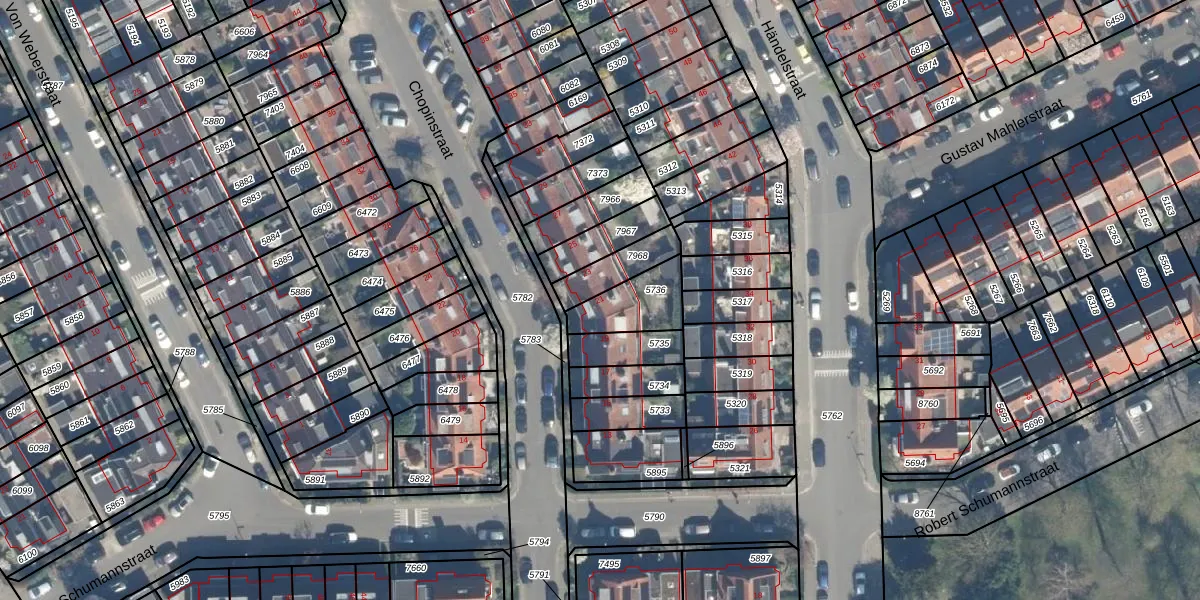 Het perceel waarop Chopinstraat 21 staat heeft een oppervlakte van 163 m². Dit is een middelgroot perceel. De perceeloppervlakte wordt geregistreerd door het Kadaster. Gedetailleerde informatie over de maten van dit perceel kunt u vinden in het rapport Kadastrale kaart met maatvoering van Chopinstraat 21.