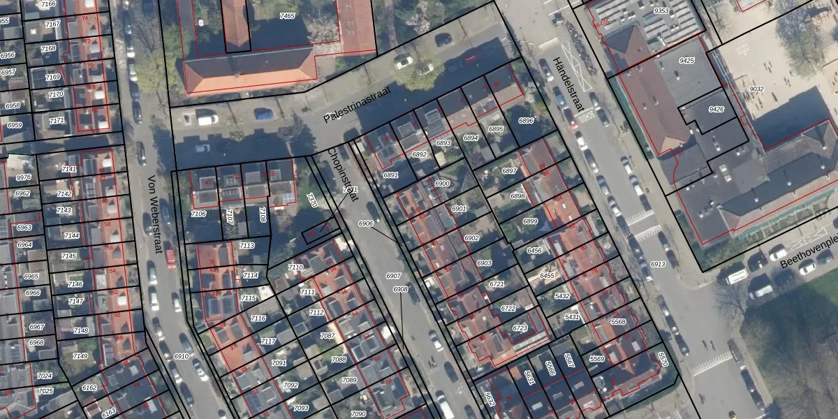 Chopinstraat 65 is gelegen op kadastraal perceel CTR00C6900. Deze kadastrale aanduiding is uniek en wordt gebruikt door het Kadaster om eigendomsrechten en andere zakelijke rechten vast te leggen. Het perceel maakt onderdeel uit van de kadastrale gemeente Catharijne.