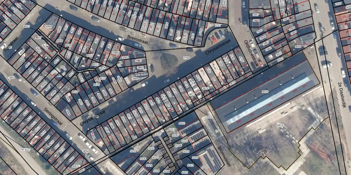 Het perceel waarop Chrysantstraat 24 staat heeft een oppervlakte van 64 m². Dit is een klein perceel. De perceeloppervlakte wordt geregistreerd door het Kadaster. Gedetailleerde informatie over de maten van dit perceel kunt u vinden in het rapport Kadastrale kaart met maatvoering van Chrysantstraat 24.