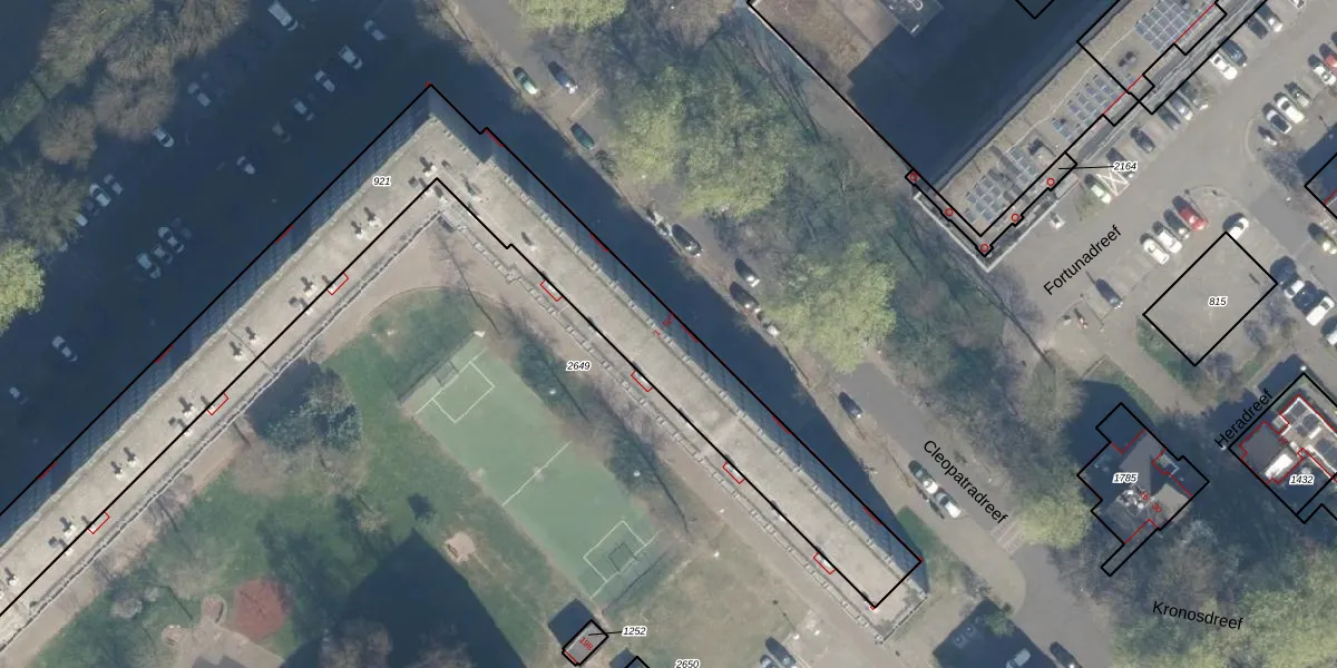 Het perceel waarop Cleopatradreef 445 staat heeft een oppervlakte van 2488 m². Dit is een zeer groot perceel. De perceeloppervlakte wordt geregistreerd door het Kadaster. Gedetailleerde informatie over de maten van dit perceel kunt u vinden in het rapport Kadastrale kaart met maatvoering van Cleopatradreef 445.