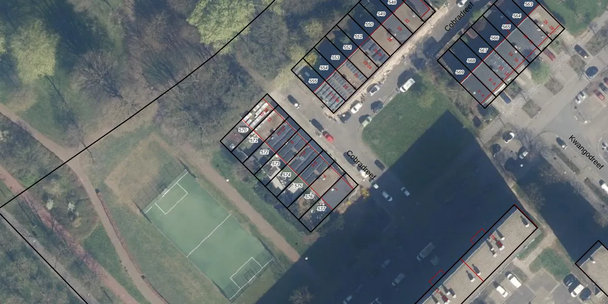 Het perceel waarop Cobradreef 8 staat heeft een oppervlakte van 116 m². Dit is een middelgroot perceel. De perceeloppervlakte wordt geregistreerd door het Kadaster. Gedetailleerde informatie over de maten van dit perceel kunt u vinden in het rapport Kadastrale kaart met maatvoering van Cobradreef 8.