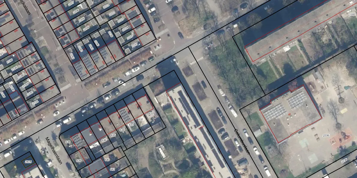 Het perceel waarop Columbuslaan 1 staat heeft een oppervlakte van 6922 m². Dit is een zeer groot perceel. De perceeloppervlakte wordt geregistreerd door het Kadaster. Gedetailleerde informatie over de maten van dit perceel kunt u vinden in het rapport Kadastrale kaart met maatvoering van Columbuslaan 1.