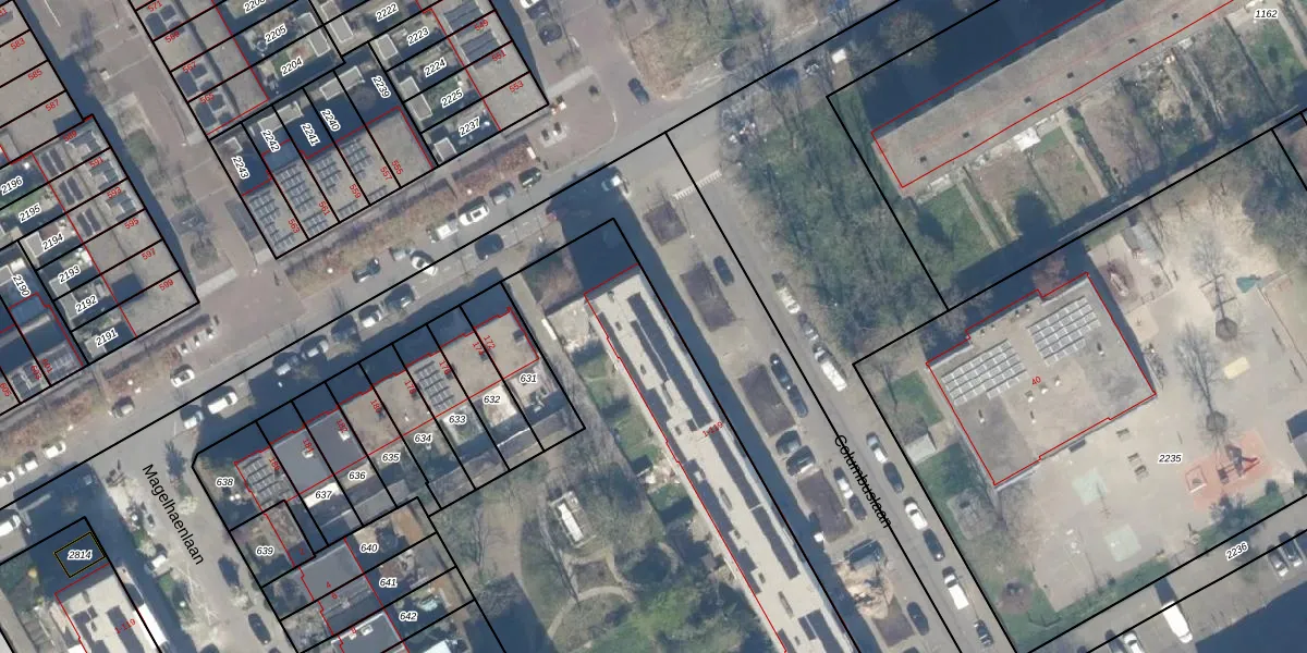 Het perceel waarop Columbuslaan 15 staat heeft een oppervlakte van 6922 m². Dit is een zeer groot perceel. De perceeloppervlakte wordt geregistreerd door het Kadaster. Gedetailleerde informatie over de maten van dit perceel kunt u vinden in het rapport Kadastrale kaart met maatvoering van Columbuslaan 15.